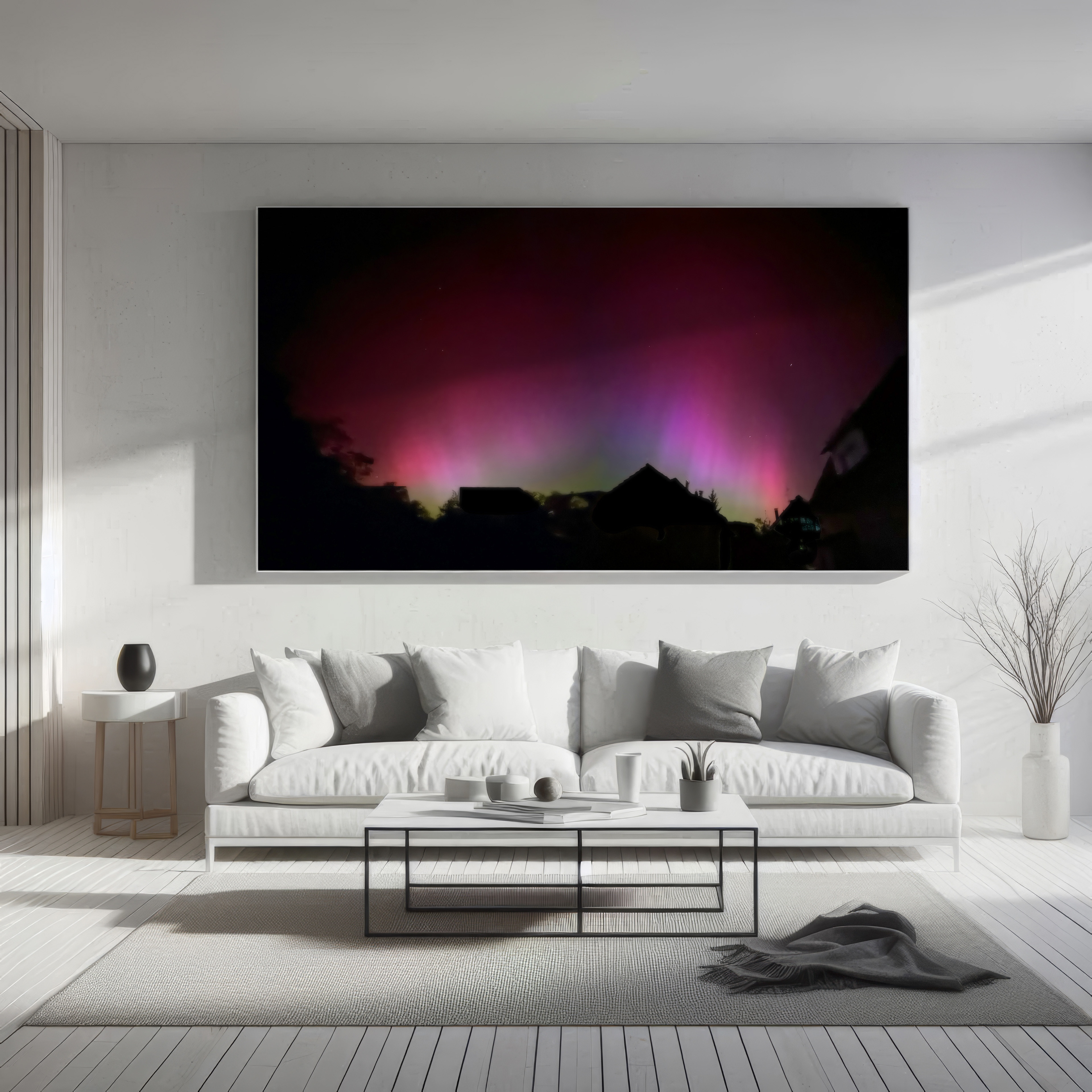 This capture of the surprise visit of Aurora Borealis was made with the iPhone 15 Max Pro. It's 3 panels stitched together in photoshop. The shots were taken in my backyard, facing east at 00:16 11 May 2024. The iPhone caputured subtle nuances from green, to blue, purple, magenta and red as well as the stars and the black sky.